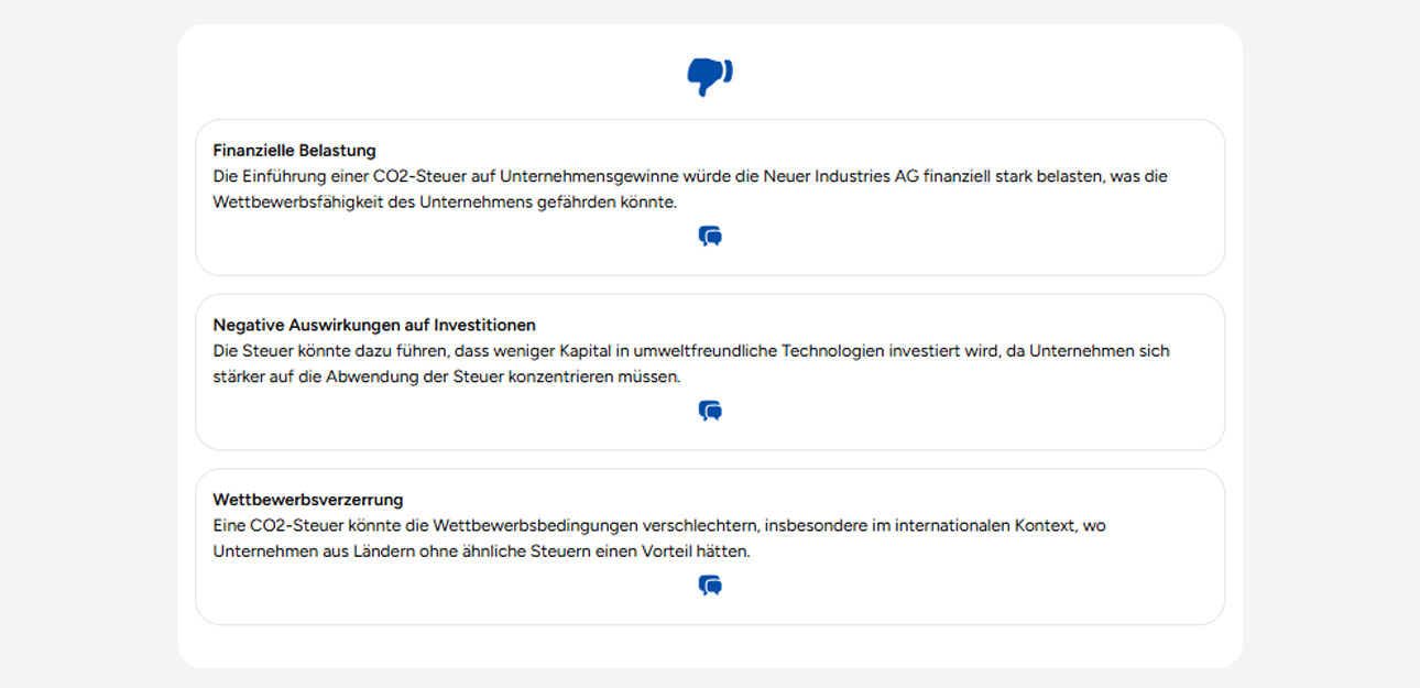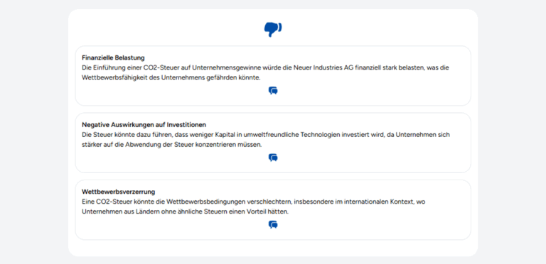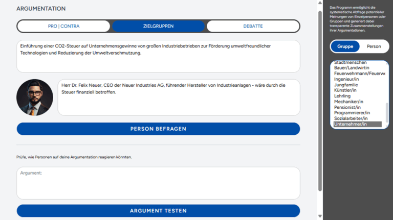 Ja, das Argumentationsmodul bietet eine Pro-Contra-Analyse, die Ihnen hilft, Themen gründlich zu untersuchen, informierte Entscheidungen zu treffen und eine fundierte Meinung zu entwickeln.