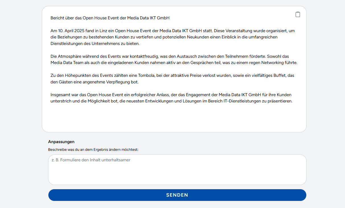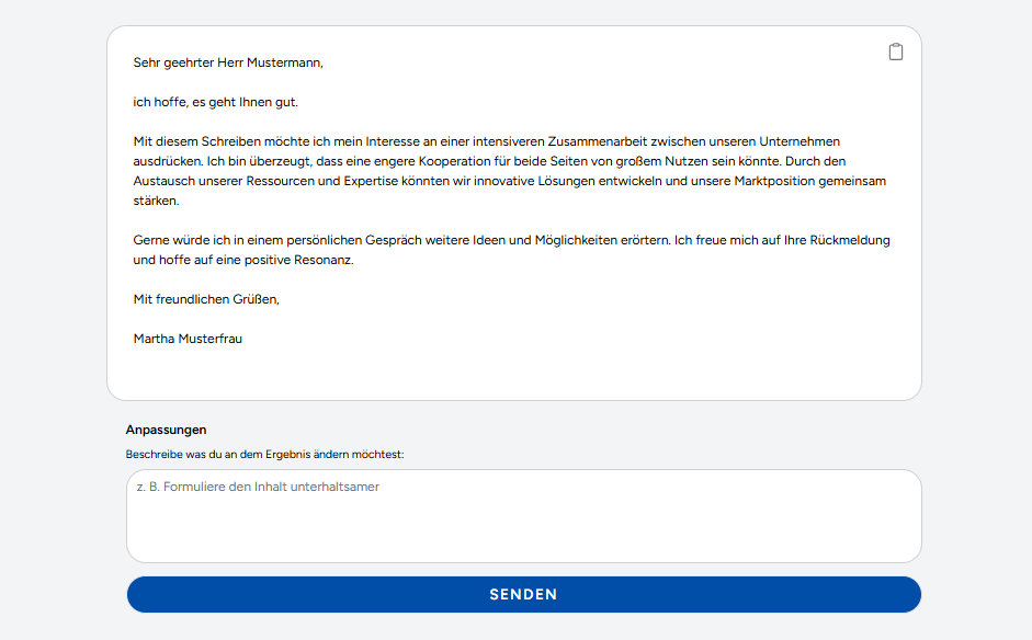 In der geschäftlichen und persönlichen Kommunikation ist die Klarheit und Qualität der Schriftsprache entscheidend. Das Schriftverkehr-Modul von IKKI bietet fortschrittliche Funktionen zur Textkorrektur und -anpassung, um sicherzustellen, dass Ihre Botschaften nicht nur fehlerfrei, sondern auch perfekt auf Ihren Stil und Ihre Anforderungen abgestimmt sind.