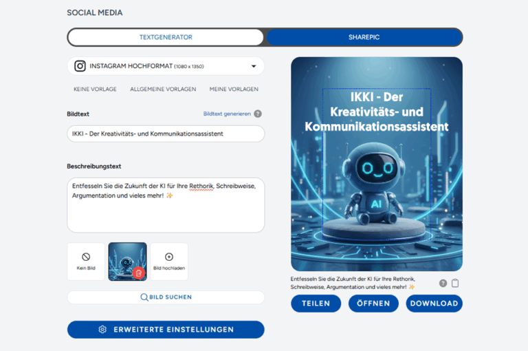 Dieses innovative Tool ist speziell dafür entwickelt, die Erstellung von Social Media Sharepics nicht nur zu vereinfachen, sondern auch zu beschleunigen. Mit einer breiten Palette an Anpassungsoptionen lässt es sich perfekt auf die individuellen Bedürfnisse von Marken und Organisationen abstimmen.